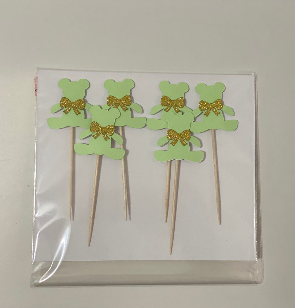 6 Teddy Bears and Bows Cupcake toppers